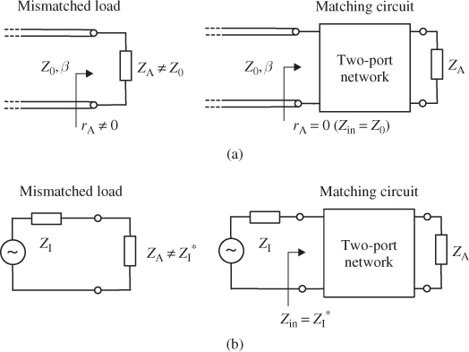 (Figure 5: Fundamental concept of impedance matching networks connecting transmission lines to arbitrary loads.)